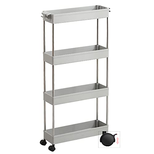 ・シーンを選ばない簡単実用ワゴンカート収納ラックは細身設計で部屋の隙間を活用できます。ランドリー、脱衣所、冷蔵庫や洗濯機、洗面台横との隙間に使用は完璧、スペースを節約し充分利用します。素材:ステンレススチール+ABS。軽くて丈夫なプラスチック素材は採用なので、軽くて移動しやすい、壁や隙間に寄りかからず場合に安定性を高めるために洗濯洗剤などの重いものを下の層に置くことをおすすめします。 バスケットはメッシュなので通気性がよい、排水性があり、汚れが落ちやすく、カビが生えにくいです。洗面台ワゴンとしてはいい、防錆性、耐久性が最高です。