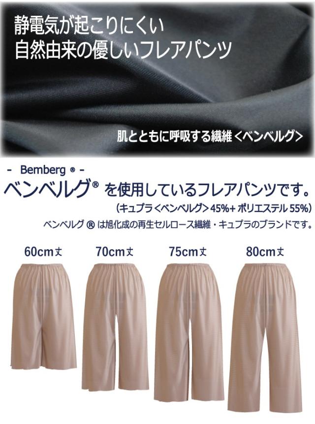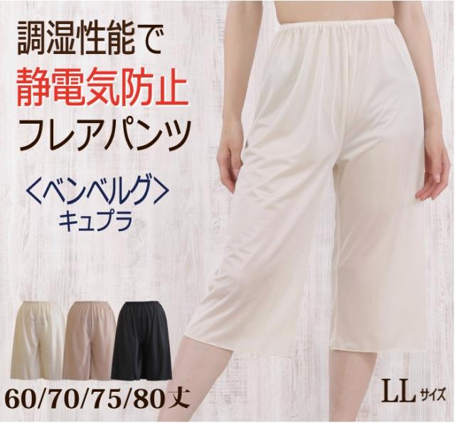 <LLサイズ>ベンベルグ使用 静電気防止 股ずれ防止 ロングフレアパンツ 60丈/70丈/75丈/80丈 キュプラ ペチコートパンツ【ペチコート ペチパンツ 浴衣 着物 和装】
