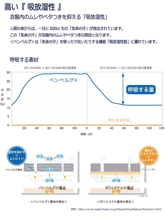 素材 キュプラ(ベンベルグ)45%・ポリエステル55% / ベンベルグは旭化成の再生セルロース繊維・キュプラのブランドです。