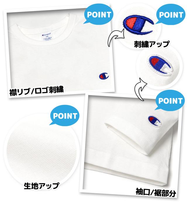 【送料無料】男児 ジュニア 本体綿100% 長袖 Tシャツ Champion 刺繍 子供服 男の子 td-0671e-ow【メール便対応】