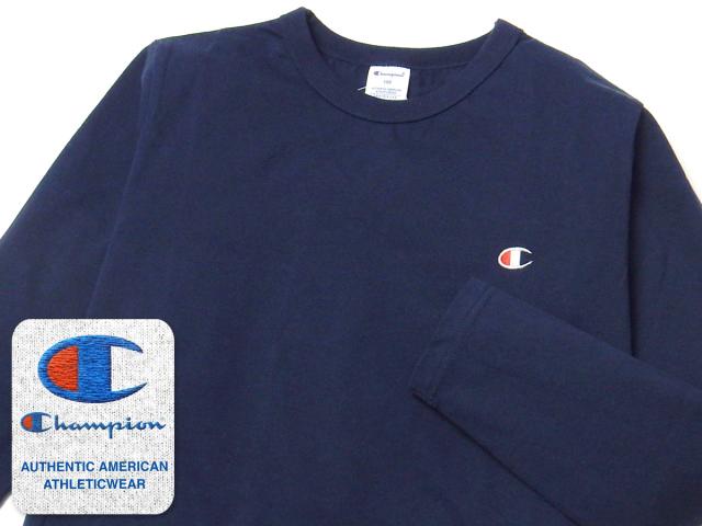 【送料無料】男児 ジュニア 本体綿100% 長袖 Tシャツ Champion 刺繍 子供服 男の子 td-0671g-nv【メール便対応】