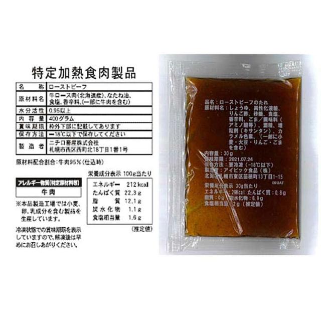■規格:ローストビーフ400g、タレ30g×2