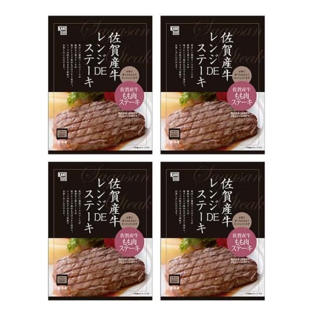 佐賀牛レンジDEステーキ モモ80gx4個 黒毛和牛 牛肉 スライス かねすえオリジナルの和風ベースのソースに軽く焼き目を付けた脂身の少ない牛モモ肉を漬込んでいます 調理は簡単で電子レンジで お歳暮 お中元 ご進物 3760032