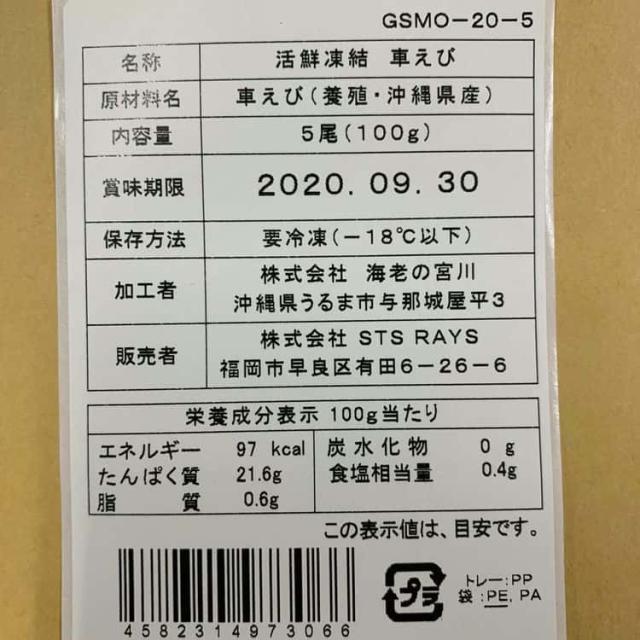 ■規格:車海老×4パック (1パックに、5尾・計約100g入)