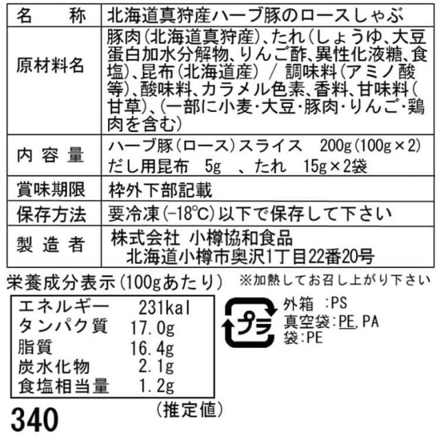 ■規格:北海道真狩産ハーブ豚ローススライス100g×2、だし用昆布5g×1袋、たれ15g×2袋