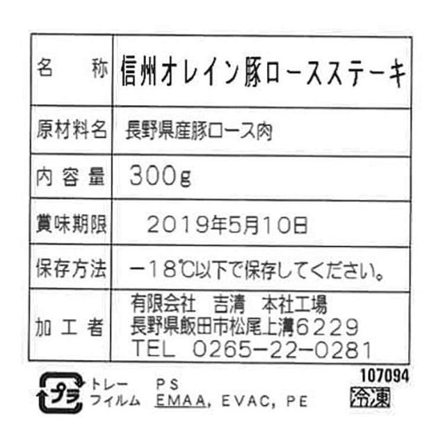 長野 信州オレイン豚 ロースステーキ 300g 専用飼料を与え丁寧に育て上げオレイン酸含有率の自主基準値をクリアした豚肉「信州オレイン豚」 肥育から製造販売まで一貫した安全体制も自慢 お歳暮 お中元 お土産 ご進物 ギフト 3950094