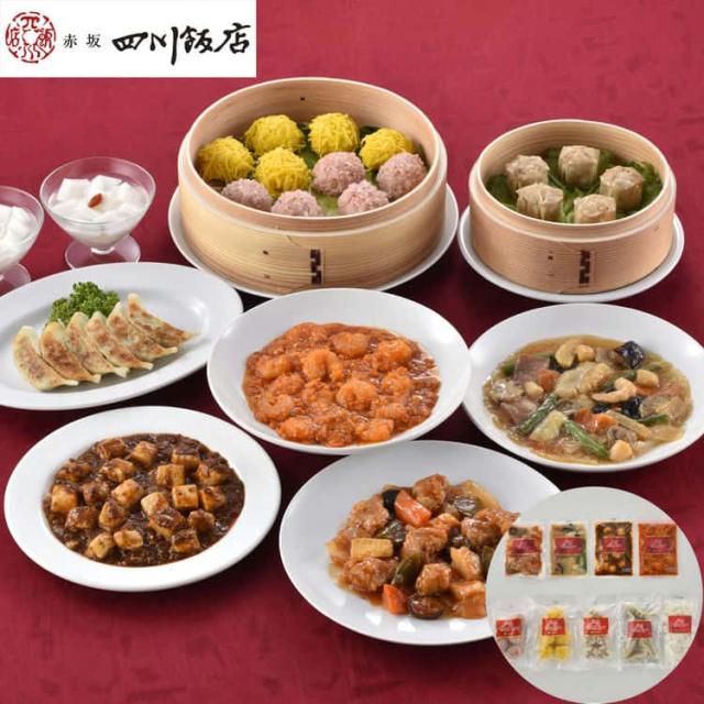 東京 「赤坂四川飯店」 陳建一監修 中華料理セット D 餃子 貝柱入焼売 錦糸焼売 珍珠丸子 エビチリソース 本格四川麻婆豆腐 本格八宝菜 酢豚 杏仁豆腐 お歳暮 お中元 お土産 ご進物 ギフト 9200070