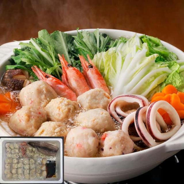 「かに入つみれ」・「えび入つみれ」・「とりごぼうつみれ」・「たこ入つみれ」など、ボリュームいっぱいのつみれを主役に「えび」や「いか」等の魚介を詰め合わせました。