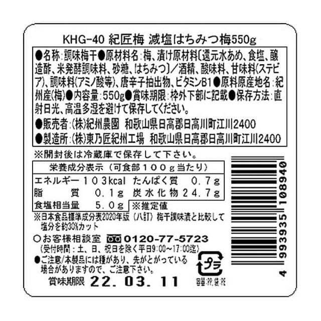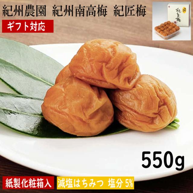 紀州農園 紀州南高梅 紀匠梅 減塩はちみつ 550g 梅干し 完熟した良質の紀州南高梅を 塩分を控えめにはちみつでまろやかに仕上げました 角樽に梅干をお詰めして紙製化粧箱に入れてお届けします お歳暮 お中元 お土産 ご進物 ギフト 5310023