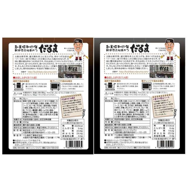 大阪新世界元祖串かつ、創業昭和四年「串かつだるま」のレトルトカレー2種5個セットです。