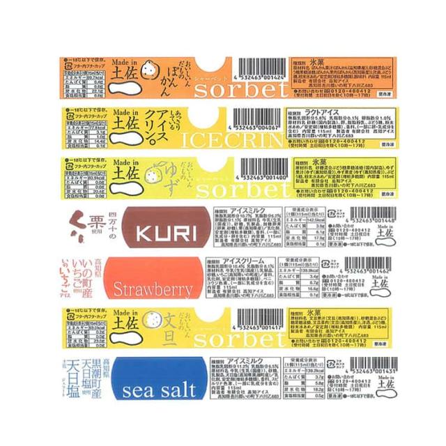 ■規格:115ml×10個(ゆずシャーベット、文旦シャーベット、ぽんかんシャーベット、いのいちごアイス、天日塩ジェラート、四万十の栗アイス 各1個、アイスクリン×4個)