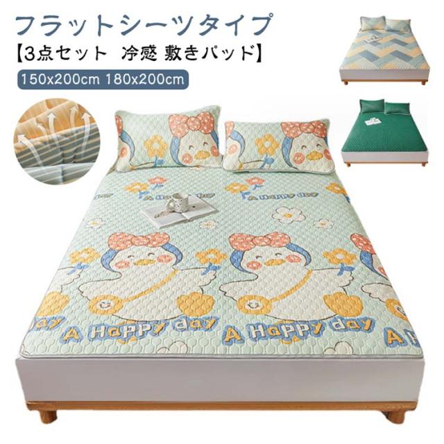 かわいい ダブル 敷きパッド セミダブル 180x200cm 防ダニ フラットシーツ 通気性 冷感マット 寝具 3点セット しきぱっと 接触冷感 涼感 敷パット ひんやりシーツ 150x200cm 抗菌 防臭 夏用しきぱっと 夏 天然ラッテクス れいかんしきぱっど 吸水速乾 冷感