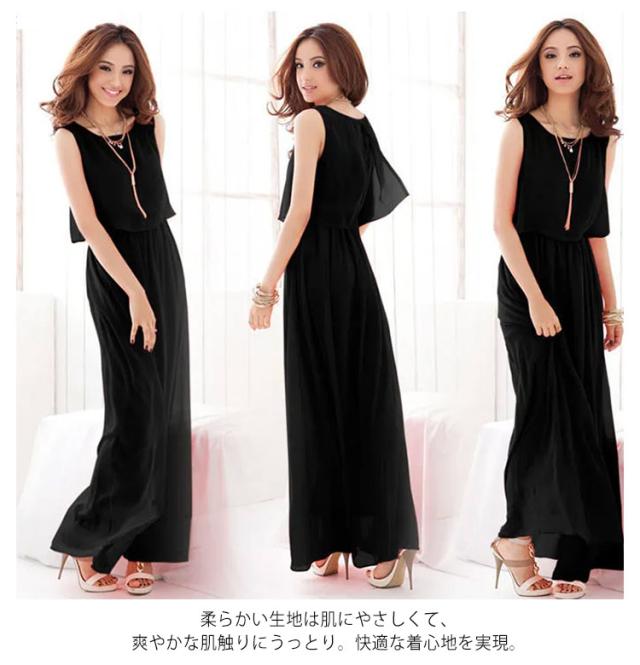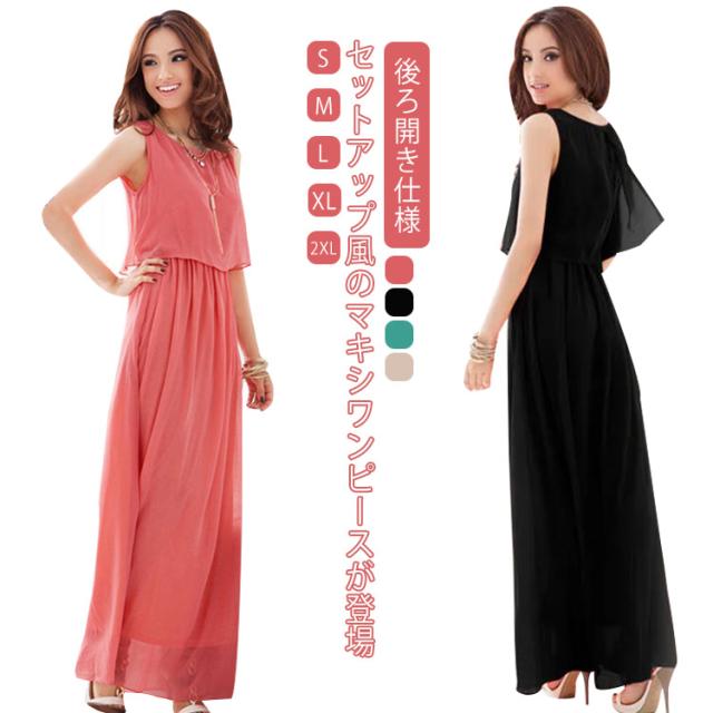 夏ワンピース 夏 ドレス ノースリーブワンピース 可愛い ふんわり マキシワンピース ロング丈 フォーマル リゾート セットアップ風 フォーマル 足長 袖なし 上品 大きいサイズ レディース シフォン 無地 着痩せ 後ろ開き仕様 エレガント 春夏 旅行 ギフト マキシ