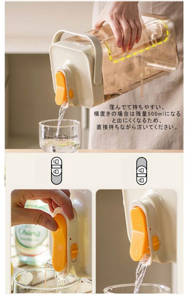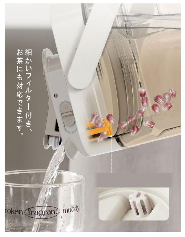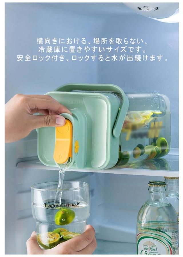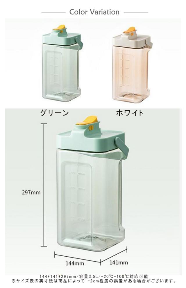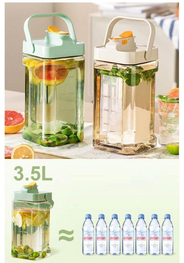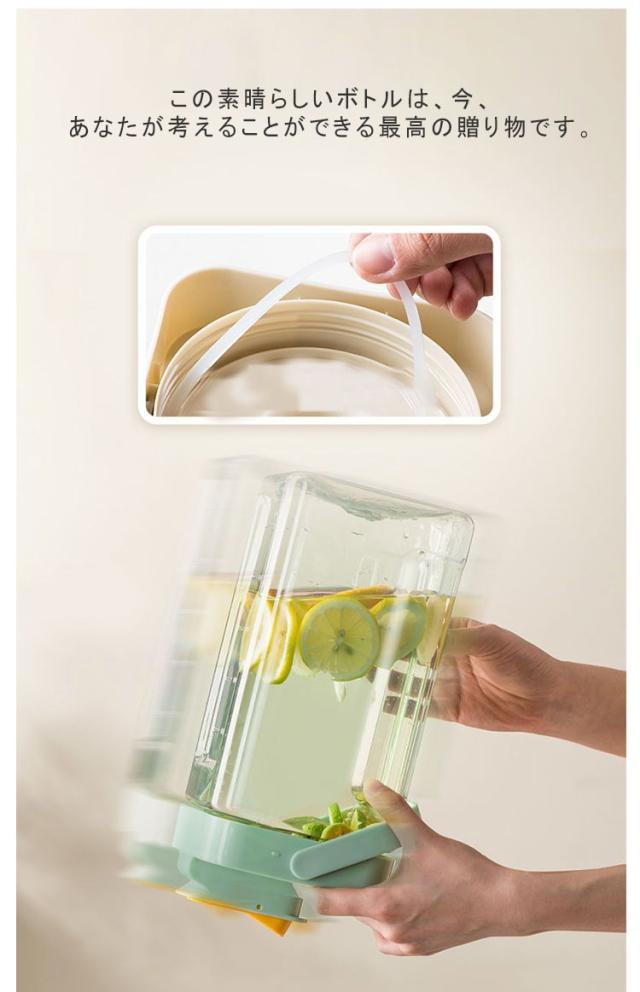 | 3.5Lの大容量!室内室外にも大活躍の多機能ウォーターボトル 好きなものを楽しみに入れよう!レモンやグレープフルーツなどをいれて見た目がかわいいデトックスウォーターも楽しもことができます♪ 3.5Lの大容量!水をたくさん飲む習慣をつけて太りにくくなり、巡りがよりよくなります!ダイエットしたい方にもおすすめ。 横向きにおける、場所を取らない、冷蔵庫に置きやすいサイズです。安全ロック付き、ロックすると水が出続けます。 細かいフィルター付き、お茶にも対応できます。 口が広いので、大きい氷や果物などが簡単に入る。手を底まで届くのでしっかり奥まで綺麗に洗える。 窪んでて持ちやすい、横置きの場合は残量500mlになると出にくくなるため、直接持ちながら注いてください。 アウトドアや部活、スポーツの場で大活躍間違いなし!ハンドルも付いて持ち運びが簡単! この素晴らしいボトルは、今、あなたが考えることができる最高の贈り物です。 | |