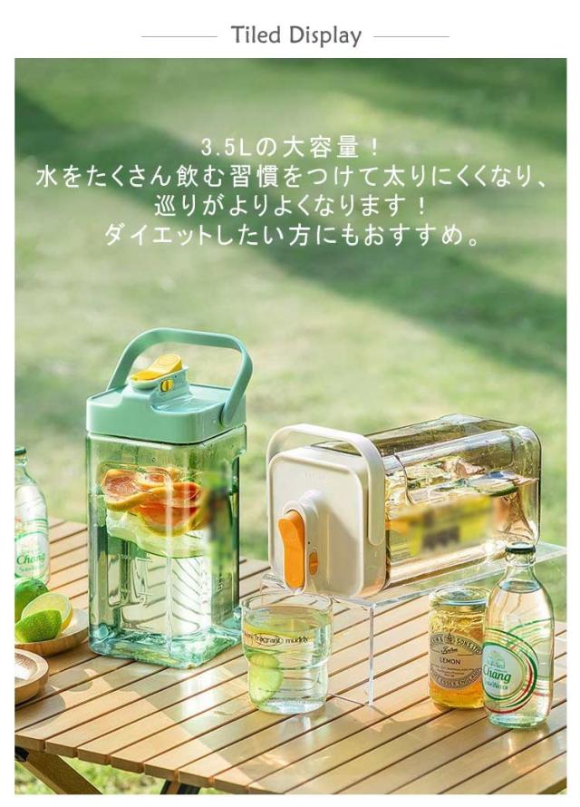 ウォーターボトル 3.5L ボトル クリア 洗いやすい ミニウォーターサーバー 冷水筒 冷水ポット 麦茶ポット 横置き 大容量 -20℃-100℃対応可能 北欧 丈夫 安全ロック 横置き ペット給水ボトル 部活 ジム スポーツ キャンプ用 お茶