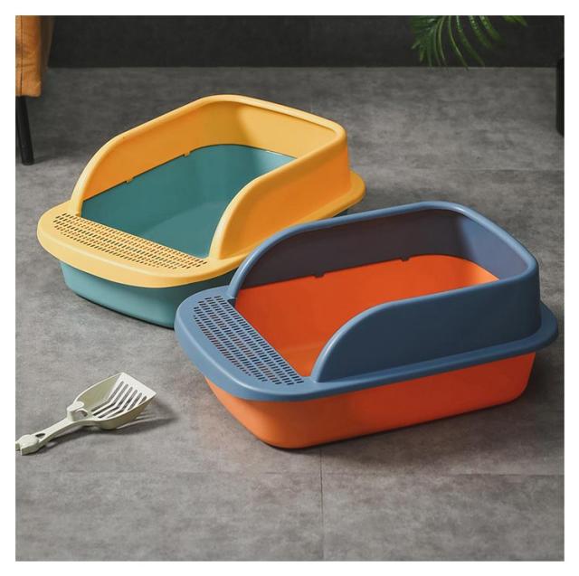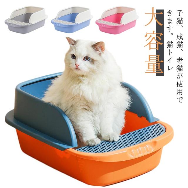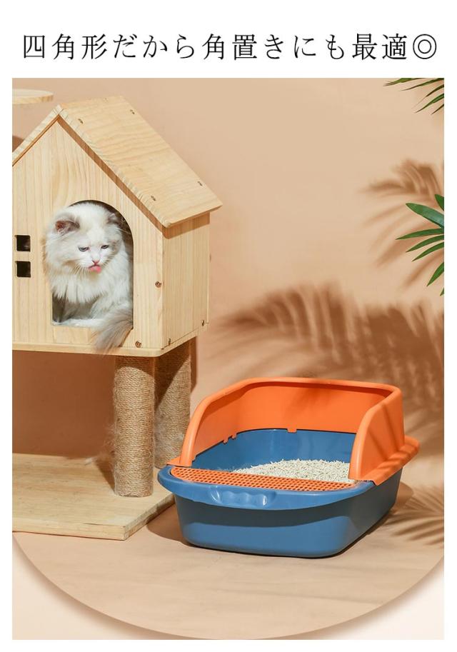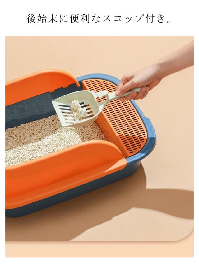 におい対策 トイレトレー トイレ 四角 ネコ用品 猫 大容量 砂入れ 猫砂 飛び散り防止 シンプル 半開放式 スコップ付き 清潔 猫用品 猫用トイレ 小型 猫用 ネコ用品 お掃除 小型