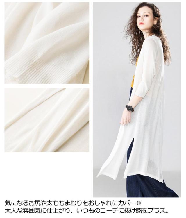 羽織り カーディガン ゆったり 送料無料 ロング UVケアサマーニットカーディガン ニット カーデ レディース 長袖 羽織 薄手 ロング丈 サイドスリット 体型カバー 無地 涼しい エレガント 上品 トップス 透け感 ロングカーデ