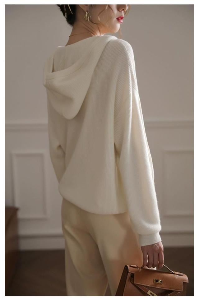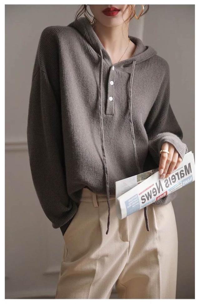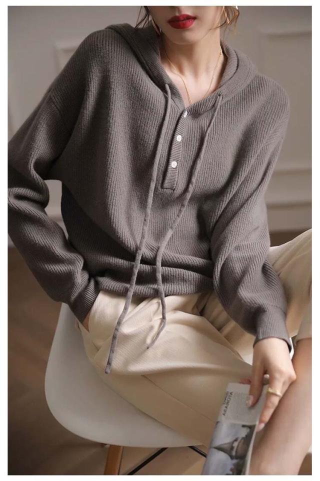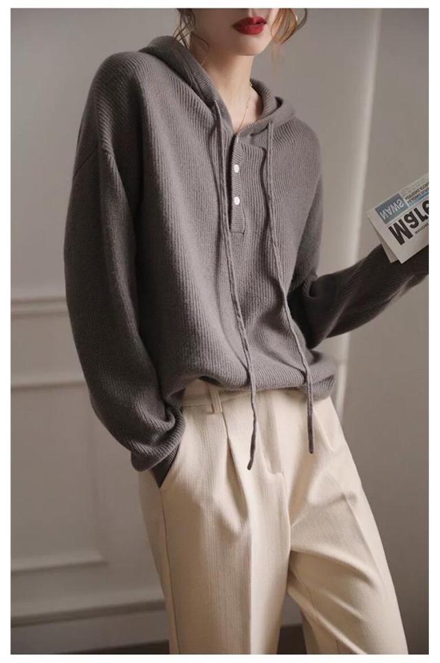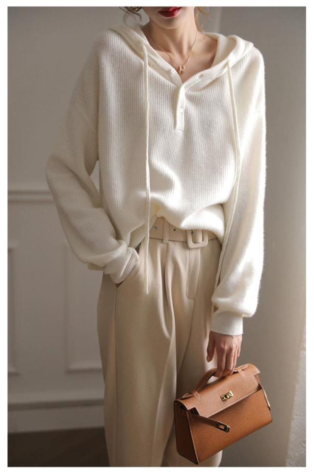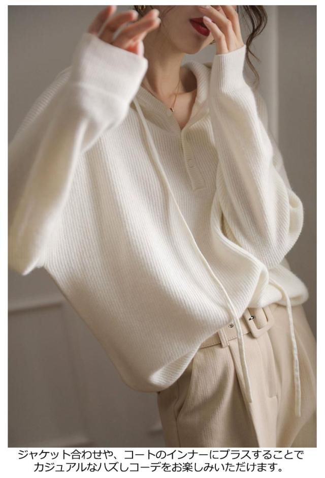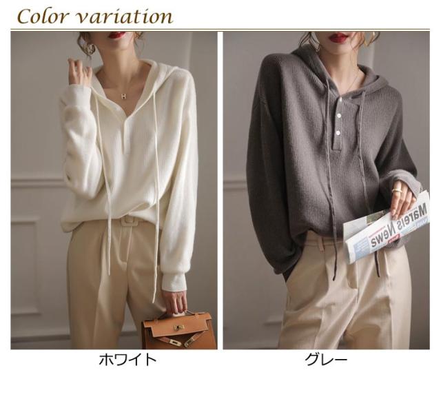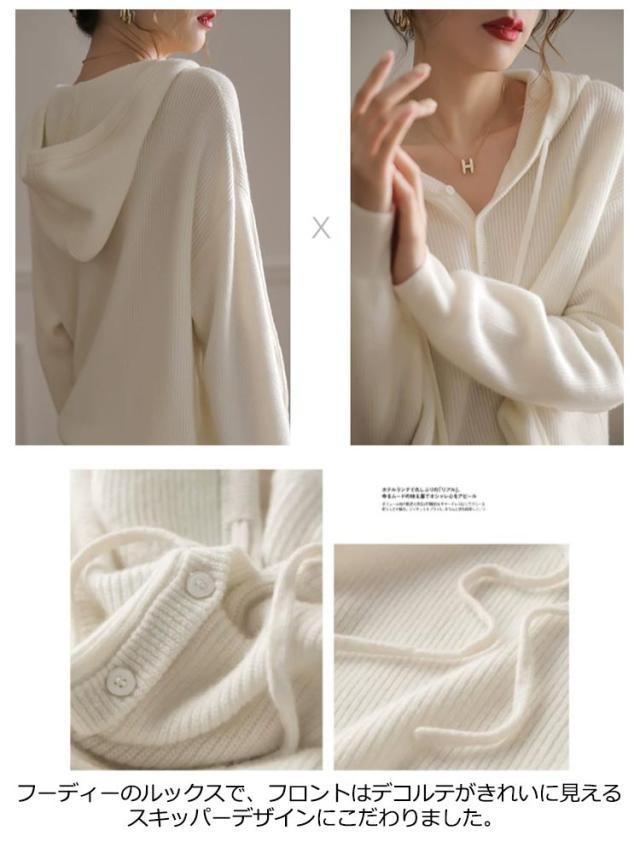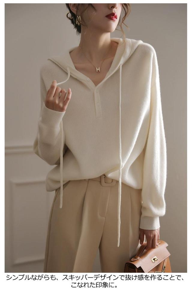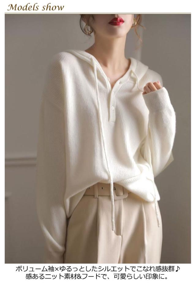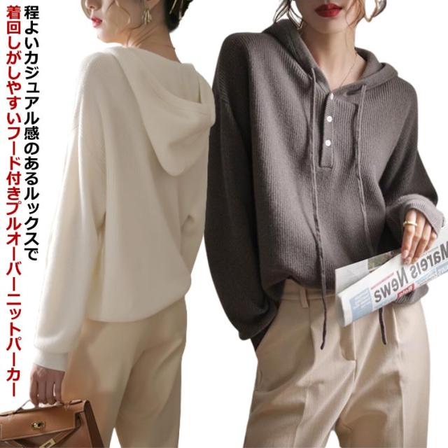 ドロップショルダー 暖かい 送料無料 フード付き 送料無料 ニットパーカー プルオーバー ニット ゆったり レディース パーカー 重ね着 ニットトップス スポーティー ニットセーター すっきり デイリー シンプル 無地 着回し 長袖