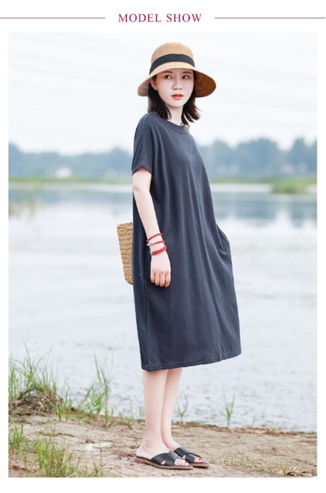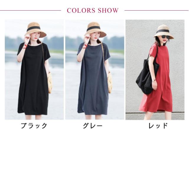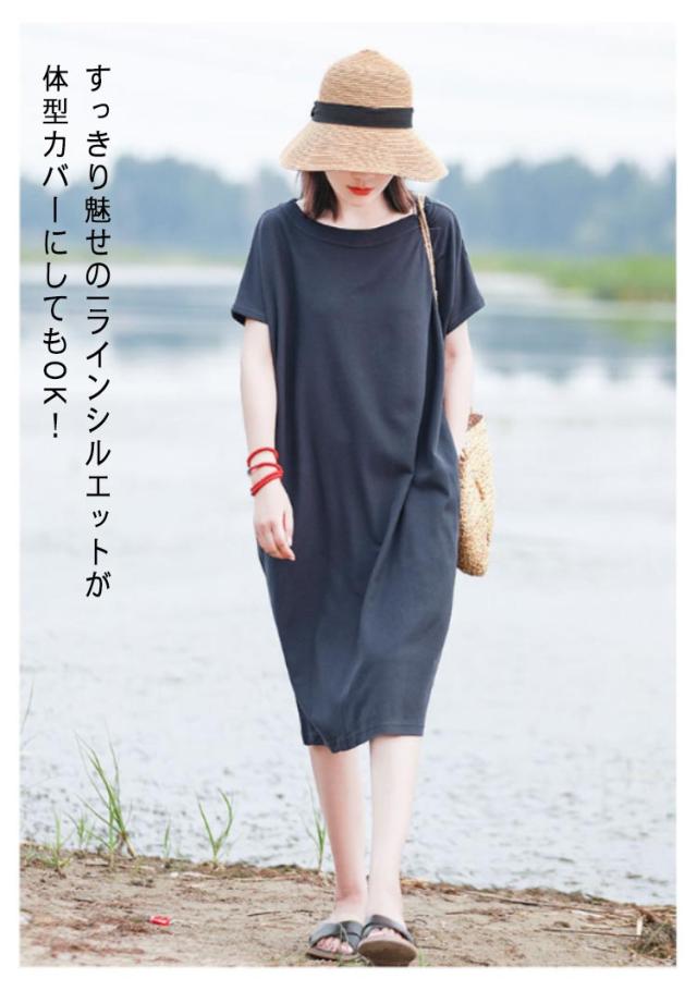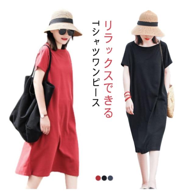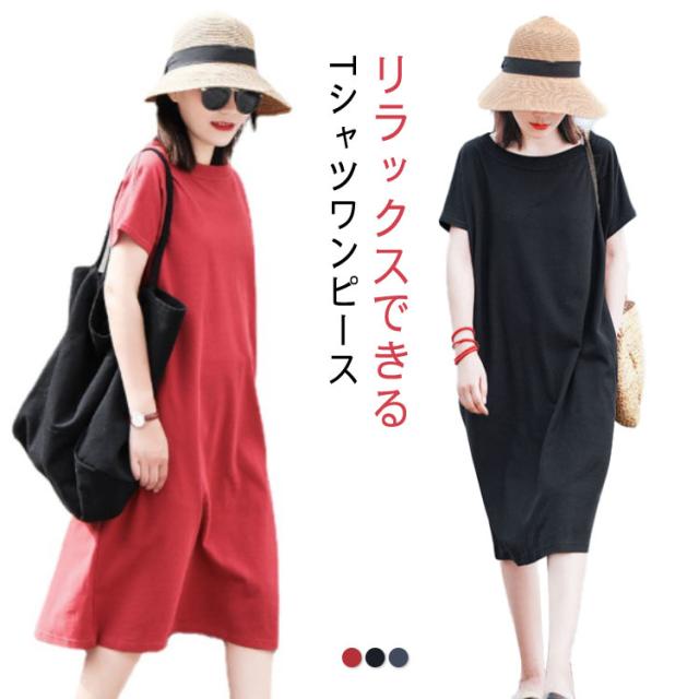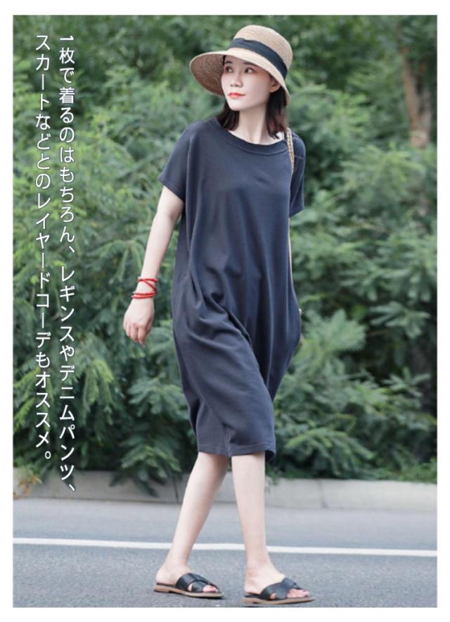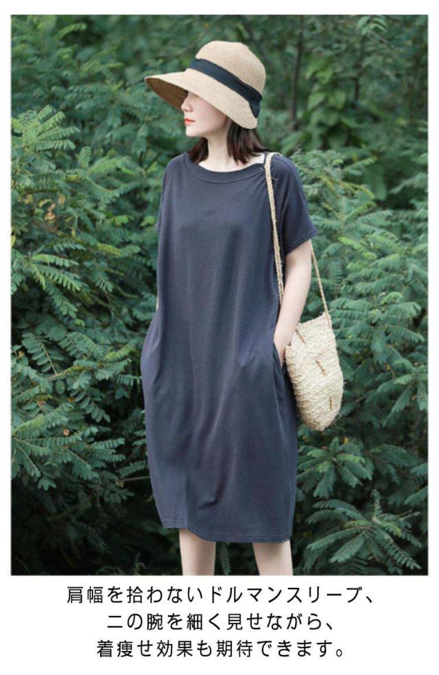 ワンピース ドルマン半袖 無地 Tシャツワンピース ルームワンピース クルーネック レディース 体型カバー ゆったり 半袖 送料無料 ロングワンピース レディース