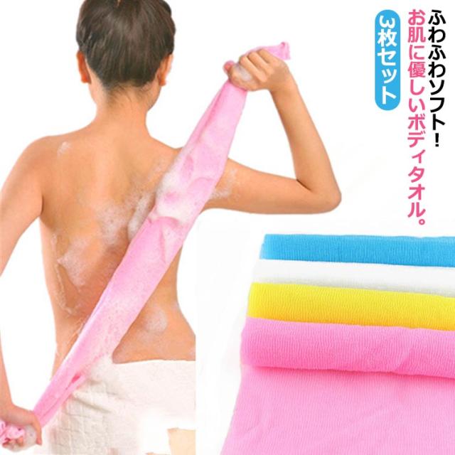 タオル ボディタオル お風呂 体を洗うタオル 背中洗い バス用品 浴用 浴用タオル ウォッシュタオル 3枚セット タオル 泡立つ ボディケア 体洗い 背中つるつる 送料無料