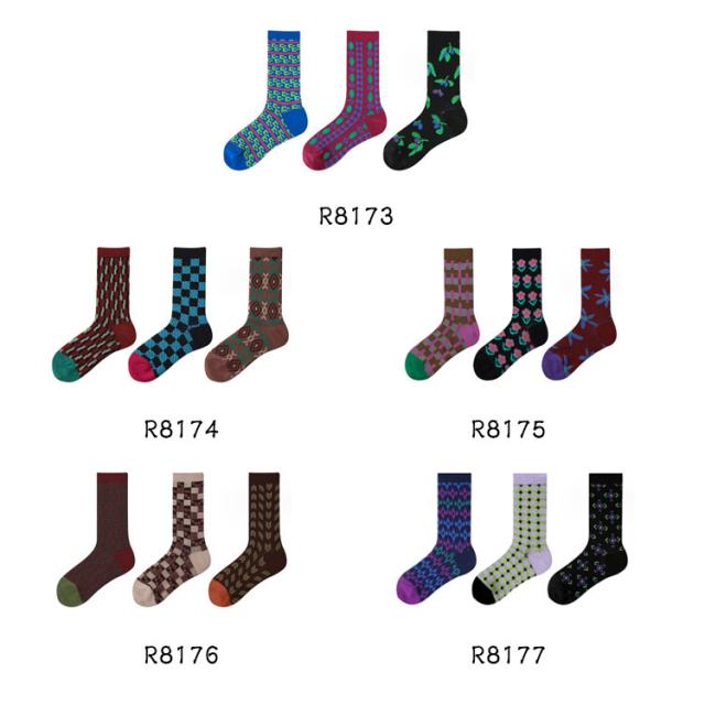 ミドル丈 花柄 3足セット スニーカーソックス ボーダー柄 秋色 北欧 ソックス 靴下 ソックス レディース チェック 靴下 靴下 クルー丈 クルーソックス おしゃれ ソックス くつした ヴィンテージ風 靴下 レトロ 靴下 ソックス 夏用 靴下 ソックス 秋用 女性用 チェック柄