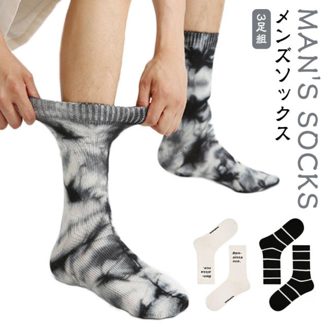 3足セット 靴下 ソックス ソックス タイダイ ボーダー柄 メンズ ミドル丈 靴下 蒸れにくい メンズソックス スニーカー 靴下 ミドル丈 靴下 スニーカーソックス スニーカー くつした スポーツ 靴下 春用 夏用 秋用 冬用 男性用 メンズ靴下 スポーツソックス
