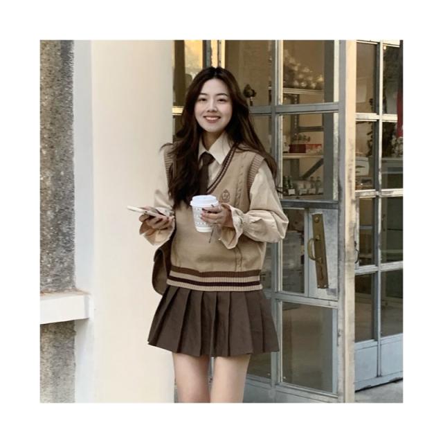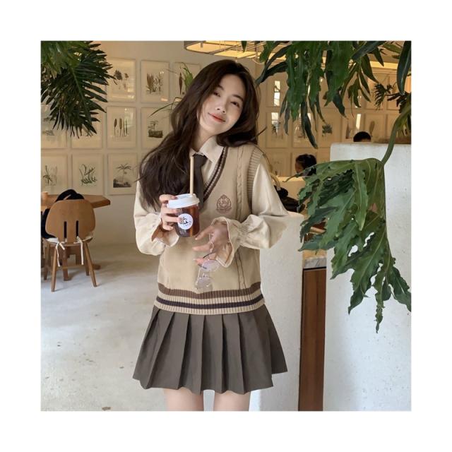 ライン入り 制服 3点セット 制服 学生 JK制服 上下セット 白シャツ 韓国 ニットベスト プリーツスカート 送料無料 長袖 おしゃれ スクール 女子高校生 高校生 中学生 学生服 女の子