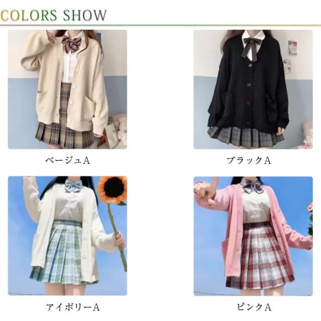 | シンプルなデザインが制服にも合わせやすいカーディガンです! 上質の素材を使ったニットで、毛玉ができにくくデイリー使いに最適です。 伸縮性がある柔らかい肌触りで、着心地がバツグンです だぼッとした少し長めの袖と長めの丈感でルーズシルエットに。女の子らしさを演出します ゆったり着れるサイズ感で学校はもちろん、テーマパークやイベントでのコスプレもオシャレに決まる | |