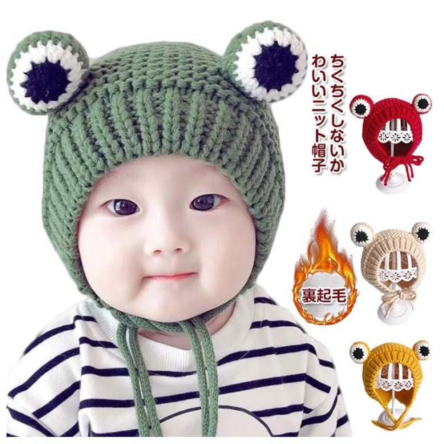 女の子 スキー カエル ニット帽子 ニット帽 春 可愛い 男の子 子供 ベビー 裏起毛 キッズ 保育園 耳付き お出かけ 寒さ対策 ギフト プレゼント 赤ちゃん 子ども こども 冬 秋 帽子 44-50cm 可愛い 韓国 幼稚園 薄手