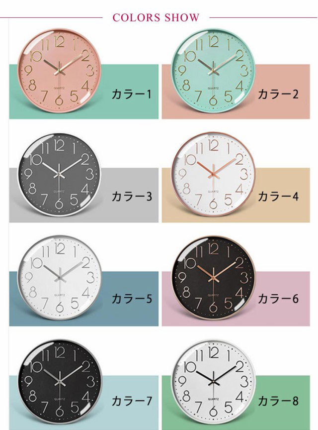 | 11色展開でカラーが豊富なかわいいシンプル掛け時計。 おしゃれな大きめ文字盤で壁にかけても見やすいデザイン。 音がしないので快適に過ごせる。時計の音が気になる方にオススメです。 必要な情報がひと目でわかるデザイン。乾電池だから取り換えも簡単。 北欧インテリアのお部屋にもおすすめ。 | |