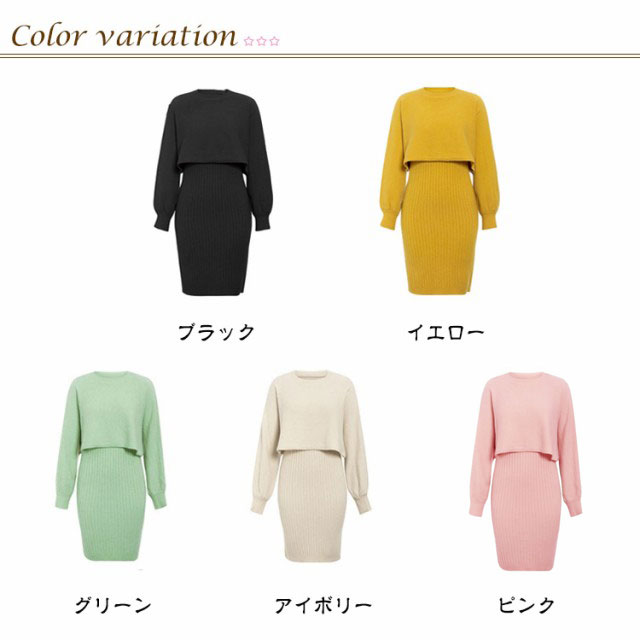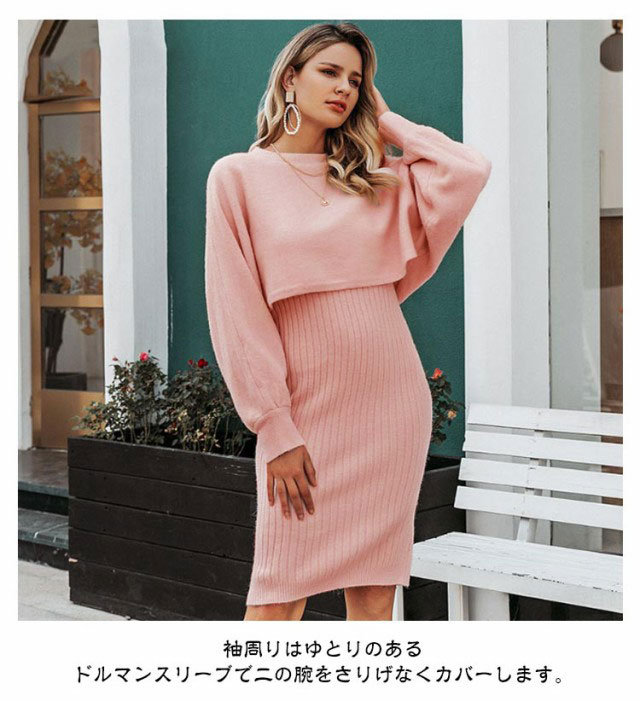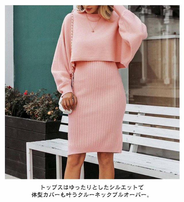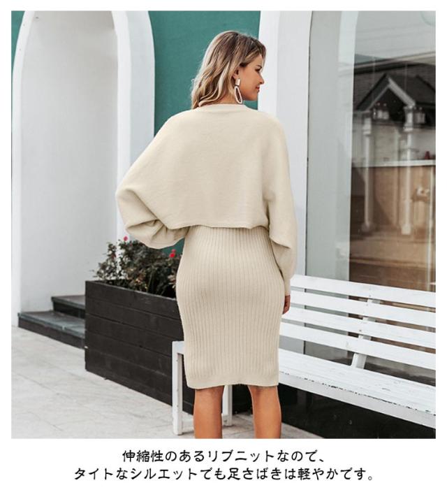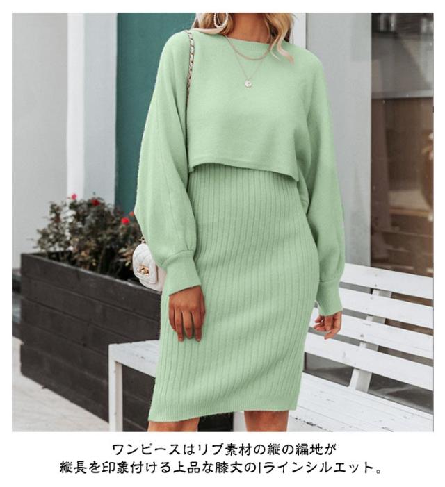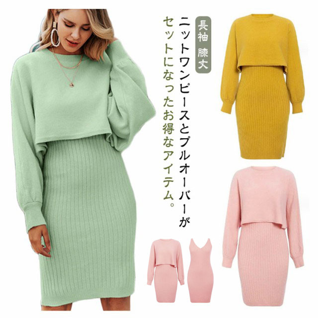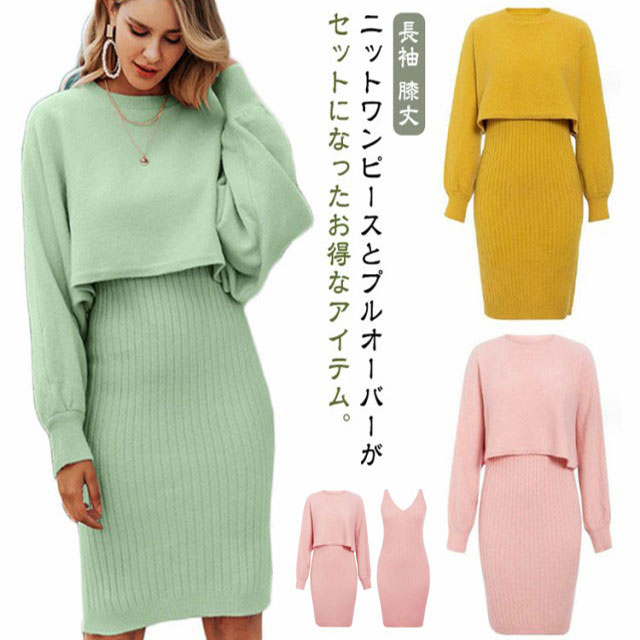 レディース ワンピース 秋冬 ニットワンピース 長袖 タイトワンピース ニット ニットセーター ニットプルオーバー ノースリーブワンピース きれいめ 膝丈 ニットセットアップ 2点セット シンプル 大人 ニットプルオーバー おしゃれ ニットトップス