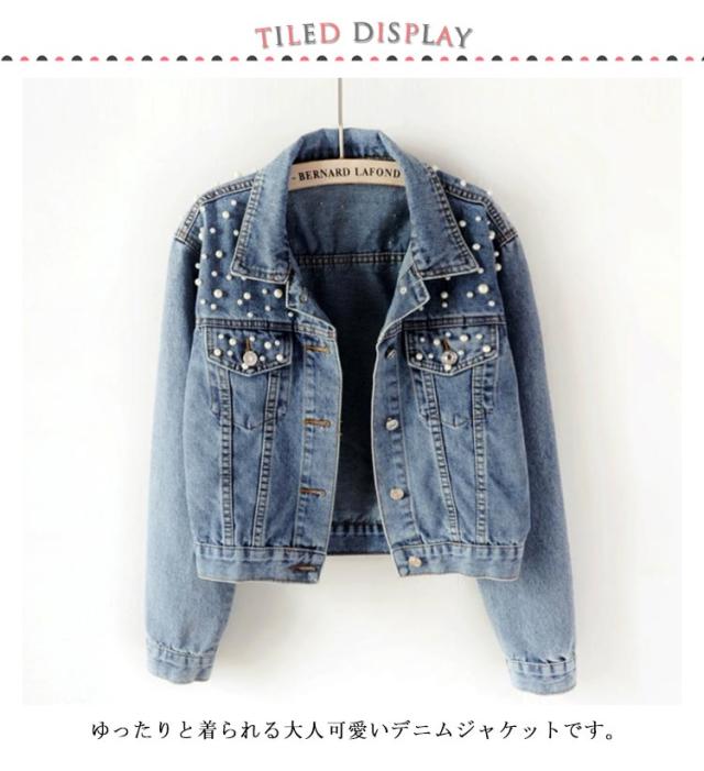 Gジャン デニムジャケット カジュアル パール付き ショート丈 春 綿 アウター 送料無料 秋 大きいサイズ 長袖 ブルー レディース 白 ネイビー 大人 ブルゾン ベスト 秋服 ホワイト 春服 きれいめ おしゃれ かわいい 羽織 S〜5XL ゆったり ジージャン