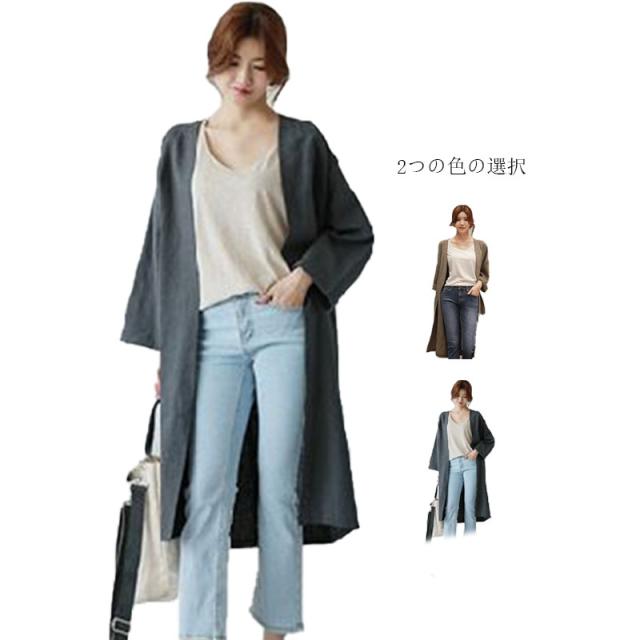 アウター カーディガン 春 送料無料 コート ロング ロングカーディガン 綿麻混 秋 大きいサイズ リネン 前開き 薄手 春 レディース