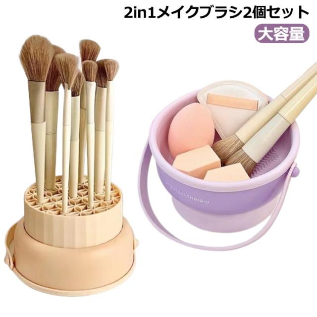 大容量 メイクブラシスタンド 2in1 2個セット 2in1 クリーナー メイクブラシクリーナー 吊り下げ可能 取り外し可能 乾燥 収納 乾燥スタンド 乾燥ペン立て 化粧ブラシ シリコン