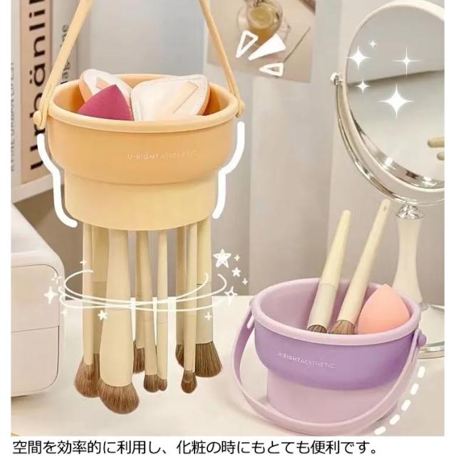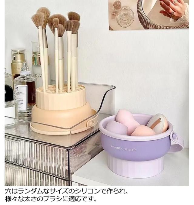 | 2in1メイクブラシ2個セット。 環境に優しいシリコンとPP素材を採用しております。 空間を効率的に利用し、化粧の時にもとても便利です。 ぶらしを洗浄後、置き台に置いて乾かしてください。 穴はランダムなサイズのシリコンで作られ、様々な太さのブラシに適応です。 可愛いボウル形状のデザインとおしゃれなカラーで、化粧台のインテリアアイテムとしても抜群! | |