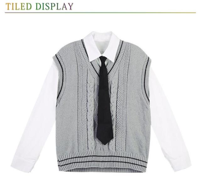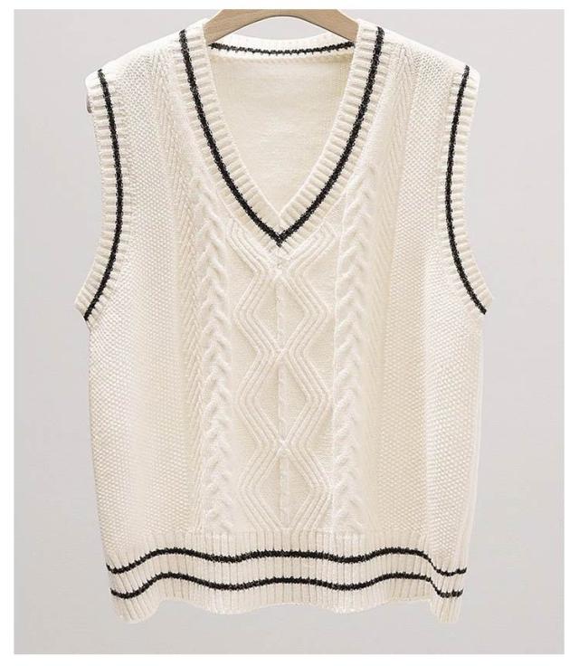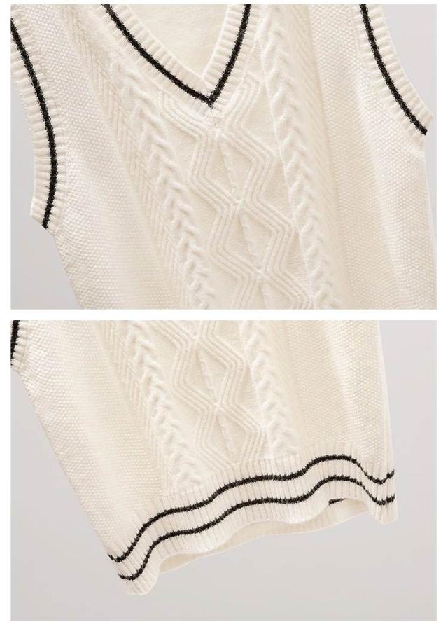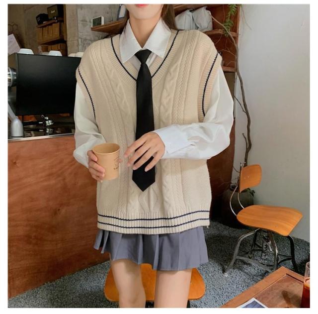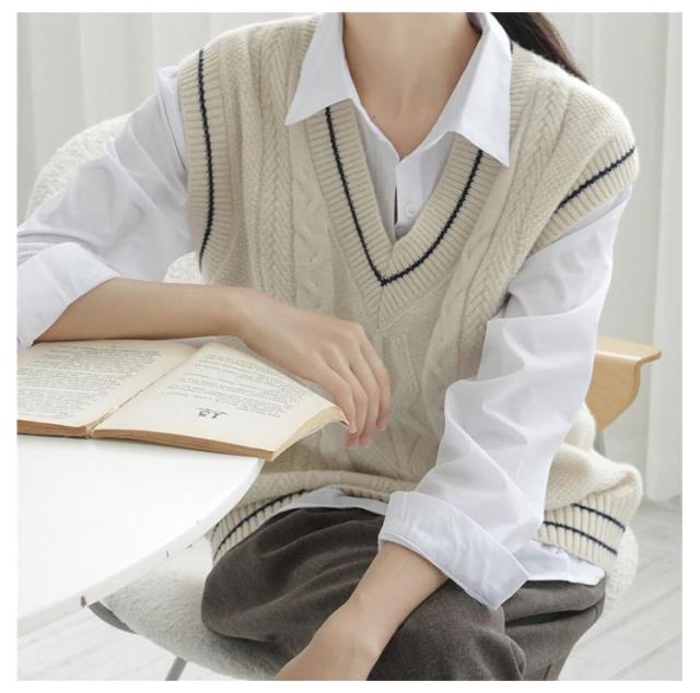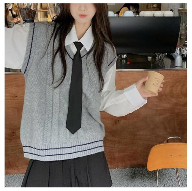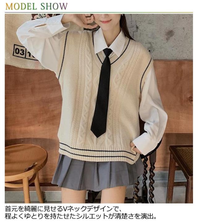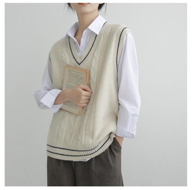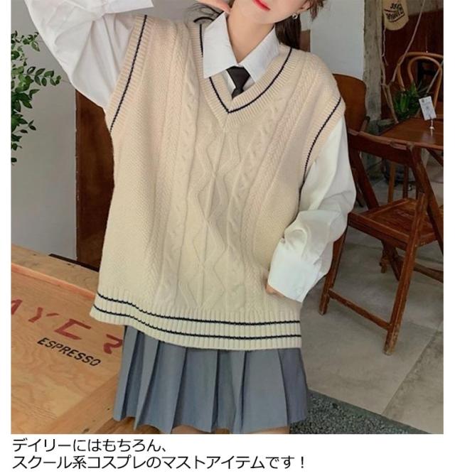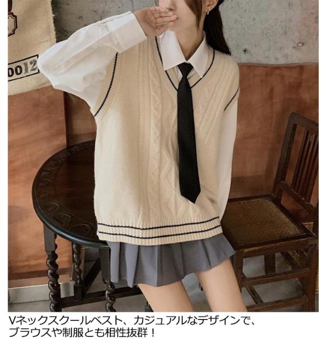 制服 スクールベスト レディース 学生 ニットベスト セーター 高校 Vネック ライン入り 中学 少女 大人 可愛い 学院風 ケーブル編み 通学 学生 トップス