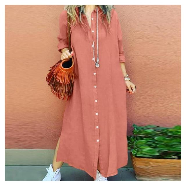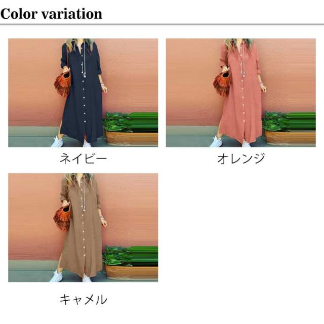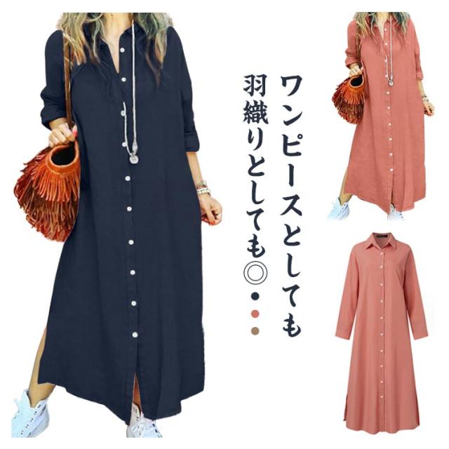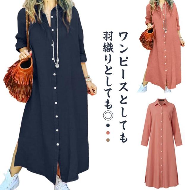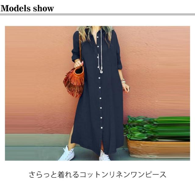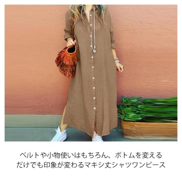シャツワンピース コットンリネン ロングワンピース リネンロングワンピース リネンシャツ S〜5XL 前開き 長袖 リネン シャツワンピ ワンピース マキシ丈 リネンワンピース 大きいサイズ レディース 羽織り 綿麻 麻