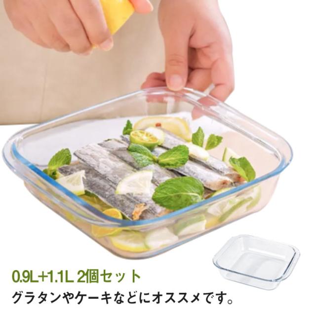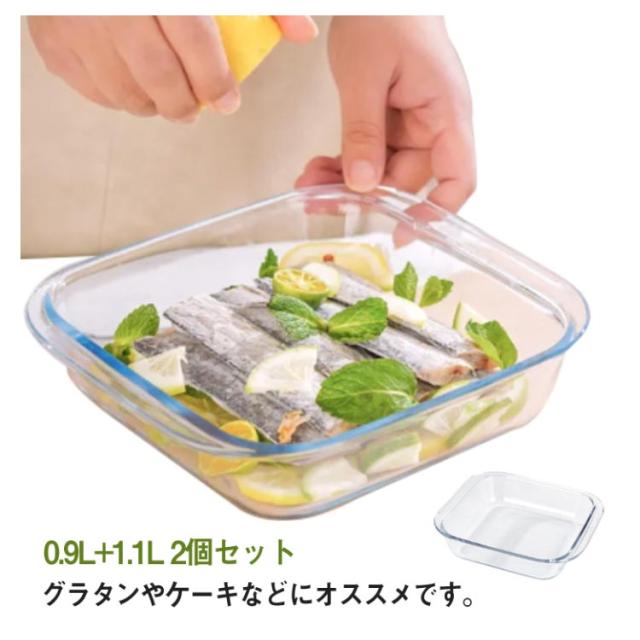 ケーキ型 グラタン皿 耐熱ガラス オーブン皿 食洗機対応 スクエア 大皿 長方形 グラタン皿 おしゃれ オーブン対応 電子レンジ対応 ガラス 耐熱皿 耐熱容器 お菓子作り 焼き菓子 オーブン料理 2個セット