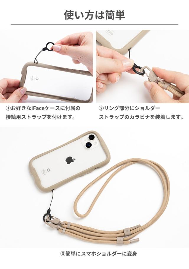 付属の接続用ストラップを使えば、お気に入りのiFaceスマホケースがショルダータイプに。
