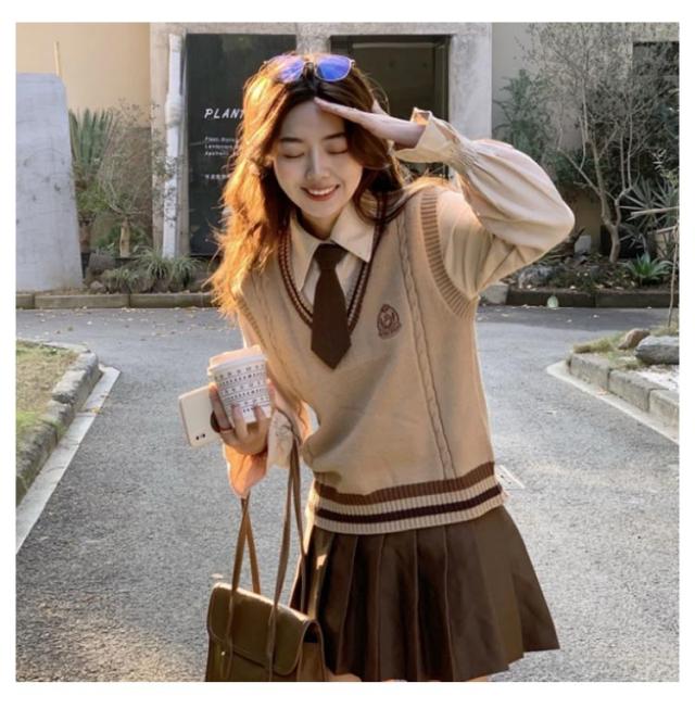 4点セット 高校生 送料無料 制服 韓国 コスチューム jk制服 学生 春秋冬用 白シャツ スクール仮装 JKコスプレ ニットベスト 長袖 上下セット おしゃれ プリーツスカート ネクタイ 高校生 高校生 女子