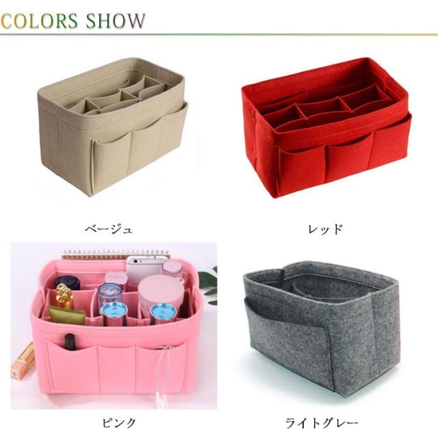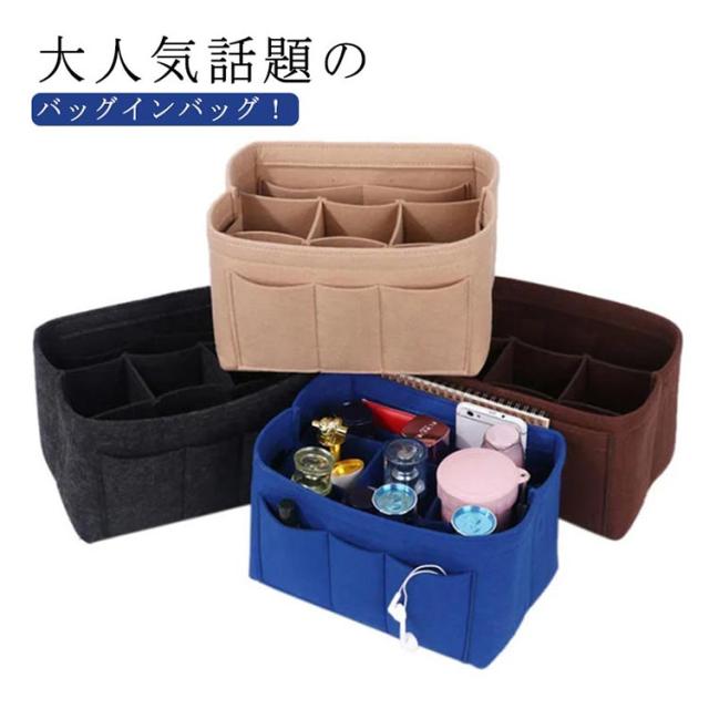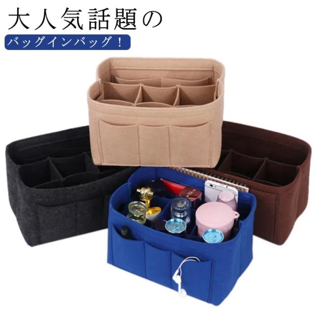 バッグインバッグ フェルト 整頓 レディース 4サイズ ポケット多め 大きめ ヨコ型 薄型 インナーバッグ 小物入れ トートバッグ用 整理 大容量 軽量 おしゃれ 縦型 軽い baginbag 自立