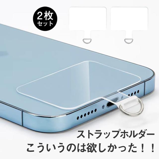 ストラップホルダー ホルダー 2枚入 ホルダーシート スマホショルダー 挟むだけ 全機種 アタッチメント 金属不使用 クリアホール