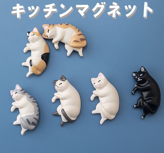 キッチンマグネット 猫 全6種類 マグネット 冷蔵庫マグネット 合成樹脂
