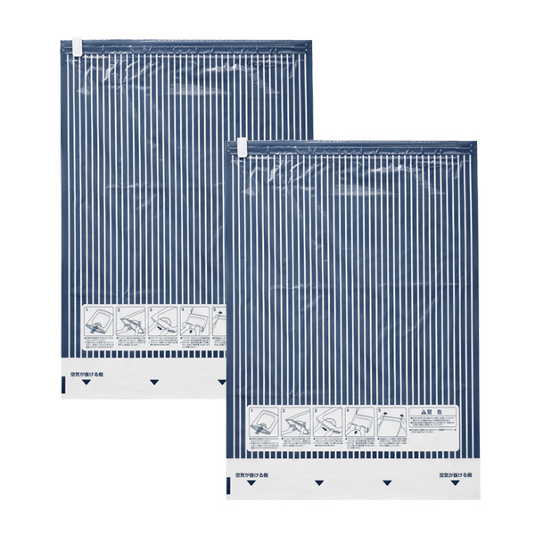 手で巻くだけで、簡単に空気を抜くことができる衣類圧縮袋。2枚入。