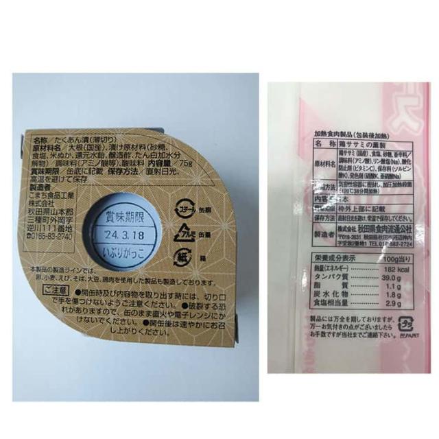 ■規格:いぶりがっこ缶詰75g×4、プリトス(1本)×4