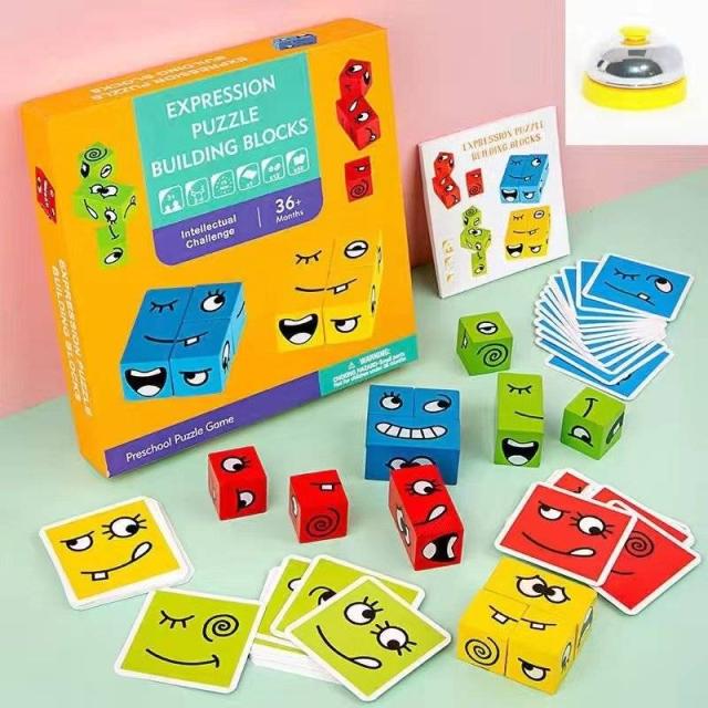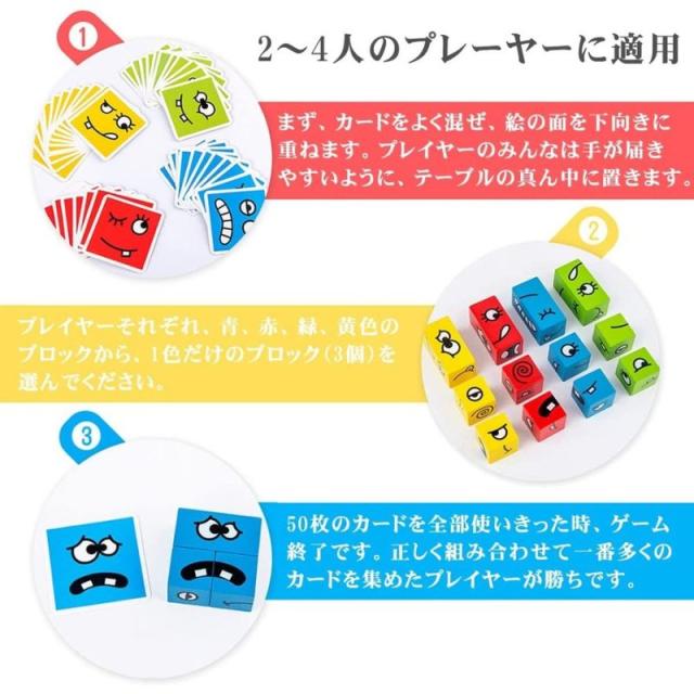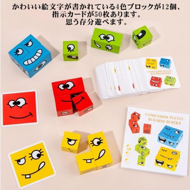 顔を変えるブロック 変顔マジックビルディングブロック カードゲーム 子供 木製ブロックパズル パズルビルディング ブロック おもちゃ