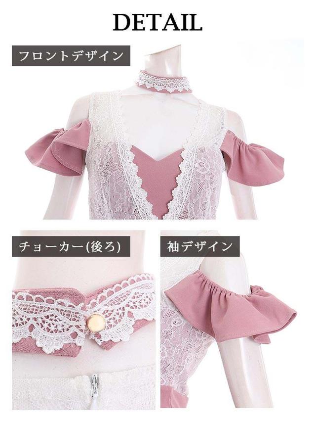 ☆レース素材のチョーカー付きでアクセ要らずのレディースドレス♪
