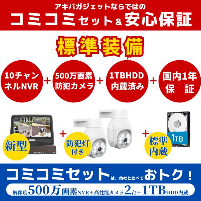 防犯カメラ poe給電 屋外 PTZ 2台セット 家庭用 監視カメラ 10インチ モニター付き 500万画像 赤外線暗視 双方向音声 遠隔監視 防水 屋内 電源工事不要