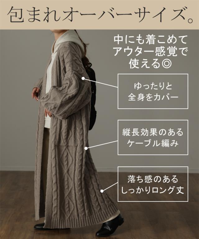 ぽわん袖 厚手 厚め しっかり ニットカーデ ロングニット オーバーニット ニット プラスサイズ ビッグ ナチュラル コート コーディガン ローゲージ ローゲージニット リブニット ライトニット ニットウェア ニットウエア リブニット ゆったり ゆる アウター ライトアウター ケーブル ケーブル編み ケーブルニット 編み ケーブルニットカーデ ケーブルニットカーディガン あぜ編み あぜ編み ロングコート ガウンコート ガウン ロング丈ニットカーデ ロング丈ニットカーディガン ボリューム ボリュームニット ボリュームニットカーデ ボリュームニットカーディガン 無地 マキシカーデ マキシカーディガン ポケット ポケット付き 羽織り リブ チクチクしない ちくちくしない 高身長 170cm 長い 長め あたたかい あったか あったかい 温かい 暖かい ロング丈 ロングスリーブ 二の腕 二の腕カバー ポワン袖 ぽわん ポワン リラックス 袖口リブ リブ袖 リブ仕様 ボリュームスリーブニット ボリュームスリーブ ボリュームスリーヴ ゆったりサイズ ゆるカジ ゆるい ゆるファッション ラクチン らくちん 楽ちん 楽 動きやすい 冷え性対策 冷房対策 冷え性予防 ガーリー 萌え 萌え袖 ランチ デート お出かけ 旅行 飛行機 アイボリー バニラ オフ オフホワイト白 白色 エクリュ キナリ 生成り グレー ライトグレー 灰 灰色 モカ ブラウン 茶 茶色 レディースファッション 旬 トレンド レイヤード 重ね着 重ね レイヤードコーデ 体型カバー ビック big ビックシルエット ビッグシルエット ビックサイズ ビッグサイズ オーバー 着痩せ 大き目 大きい 大きめ フリーサイズ フリー S M L LL 2L XL 3L XXL LLL カジュアル ベーシック オフィス オフィスカジュアル テレワーク リモートワーク リモート オンライン飲み会 おうち時間 お家時間 着回し 母の日 プレゼント ギフト 贈り物 クリスマス シンプル 大人 大人カジュアル オトナ 女性 綺麗 綺麗目 きれい キレイ キレイめ キレイメ きれいめ 高見え 上質 上品 20代 30代 40代 50代 おしゃれ お洒落 オシャレ 可愛い かわいい カワイイ カッコいい 格好良い カッコイイ 春 夏 秋 冬 春夏 秋冬 HUG.U HUGU ハグユー はぐゆー