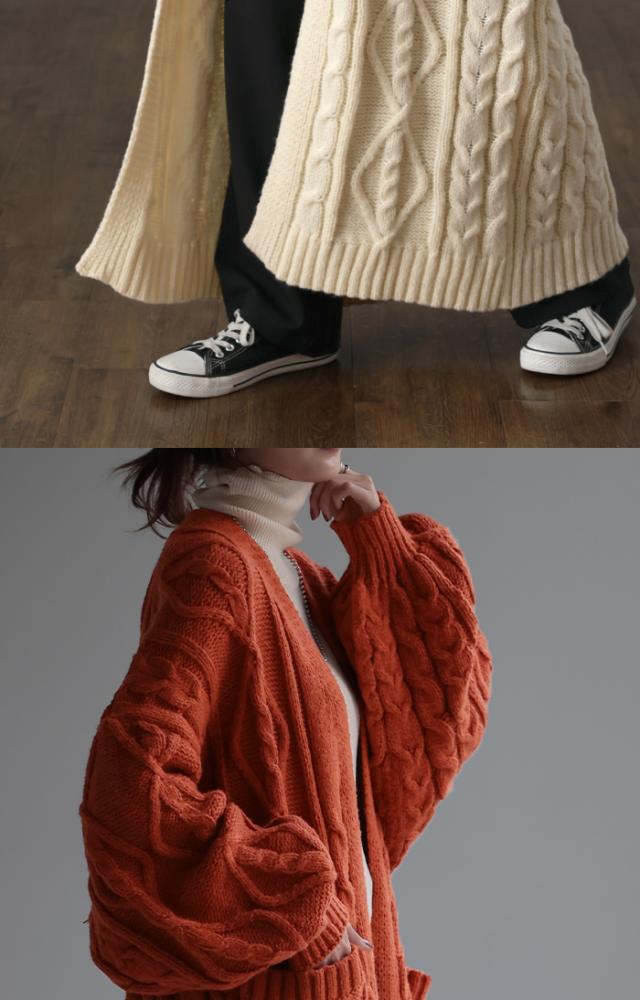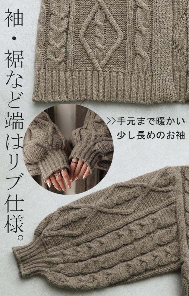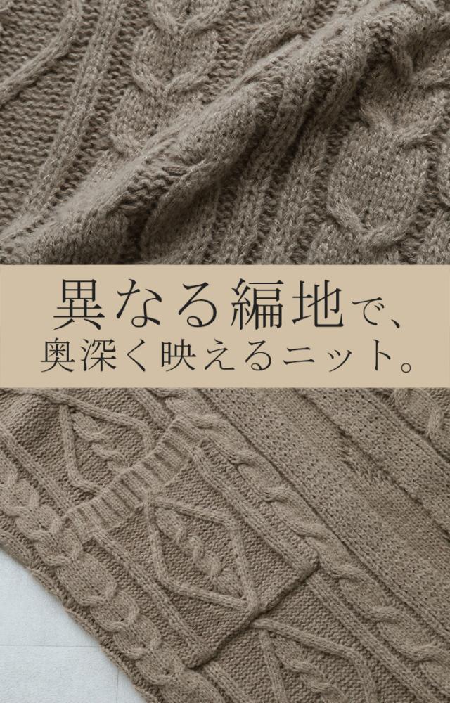 ケーブル編みが上品な表情に仕上げてる大人っぽい1着です。